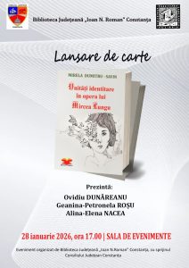 Miercuri, 28 ianuarie, la ora 17.00, vă invităm la o nouă lansare de carte: Mirela Dumitru Savin ne propune un volum despre opera scriitorului Mircea Lungu, membru al Filialei Dobrogea a Uniunii Scriitorilor din România – „Unități identitare în opera lui Mircea Lungu”, Editura Betta, 2025.