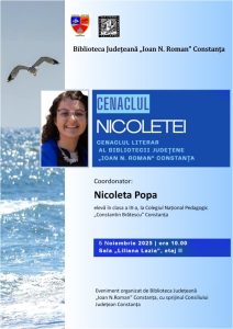 Biblioteca Județeană „Ioan N. Roman” Constanța vine în sprijinul tinerilor creatori și lansează, la sediul ei, un loc mirabil pentru dezbatere și emulație artistică: un cenaclu literar. Tinerii constănțeni vor fi încurajați aici să-și împărtășească propriile creații, să discute critic, să-și susțină experiențele creatoare, să-și dezvolte abilitățile de scriere.