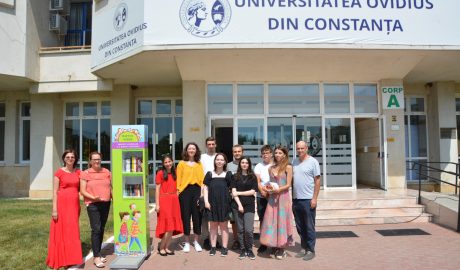 Inaugurarea primei minibiblioteci stradale, aflată în fața Campusului Universității ”Ovidius” din Constanța 2022-07-15