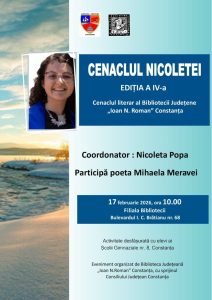Marți, 17 februarie 2026, de la ora 10.00, la #Filiala Bibliotecii Județene „Ioan N. Roman” Constanța va avea loc cea de-a 4-a ediție a Cenaclului Bibliotecii/ #CenaclulNicoletei.