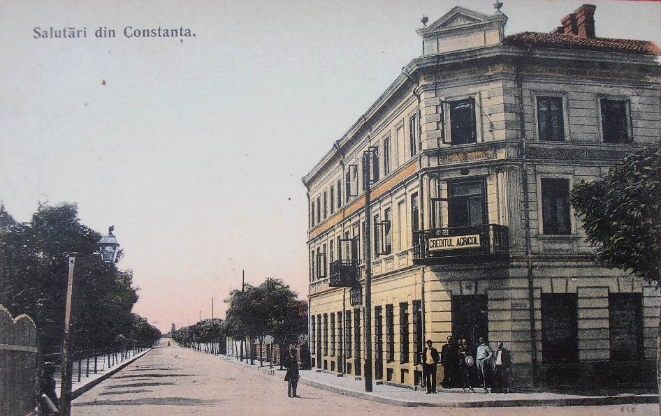 [Clădirea Hotelului Călugărul, în jurul anului 1900, într-o carte poștală din colecțiile Bibliotecii Constanța]